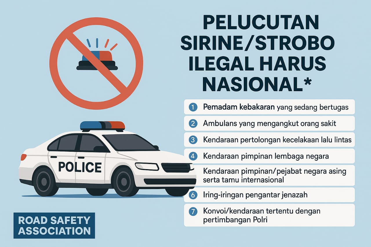 HARIANAKSARA.NET, Jakarta, 20 Agustus 2025 – Menanggapi pernyataan Menteri Sekretaris Negara yang menyebut penggunaan sirine, strobo, dan pengawalan sudah diatur dan harus digunakan secara bijak, Road Safety Association (RSA) menilai bahwa persoalan ini harus ditindaklanjuti dengan kebijakan nasional.